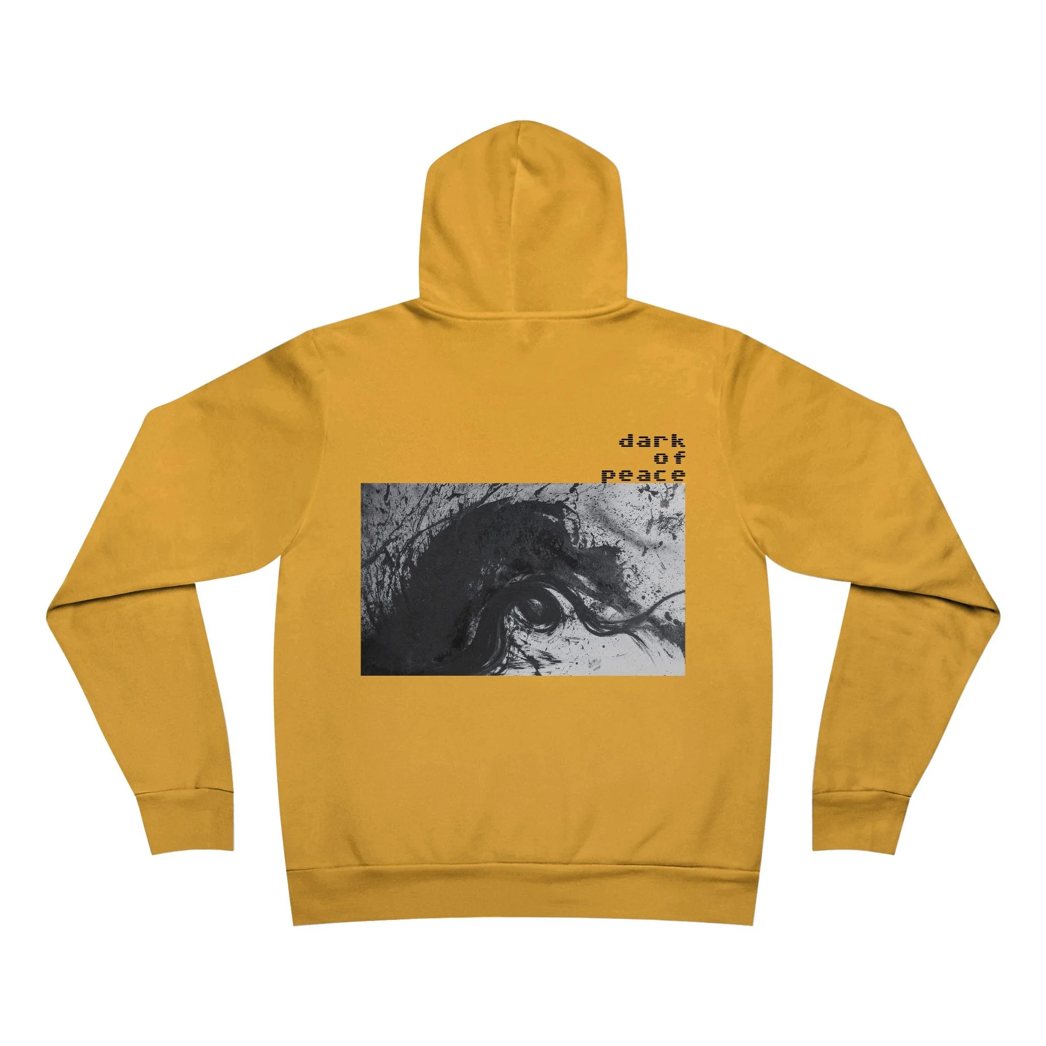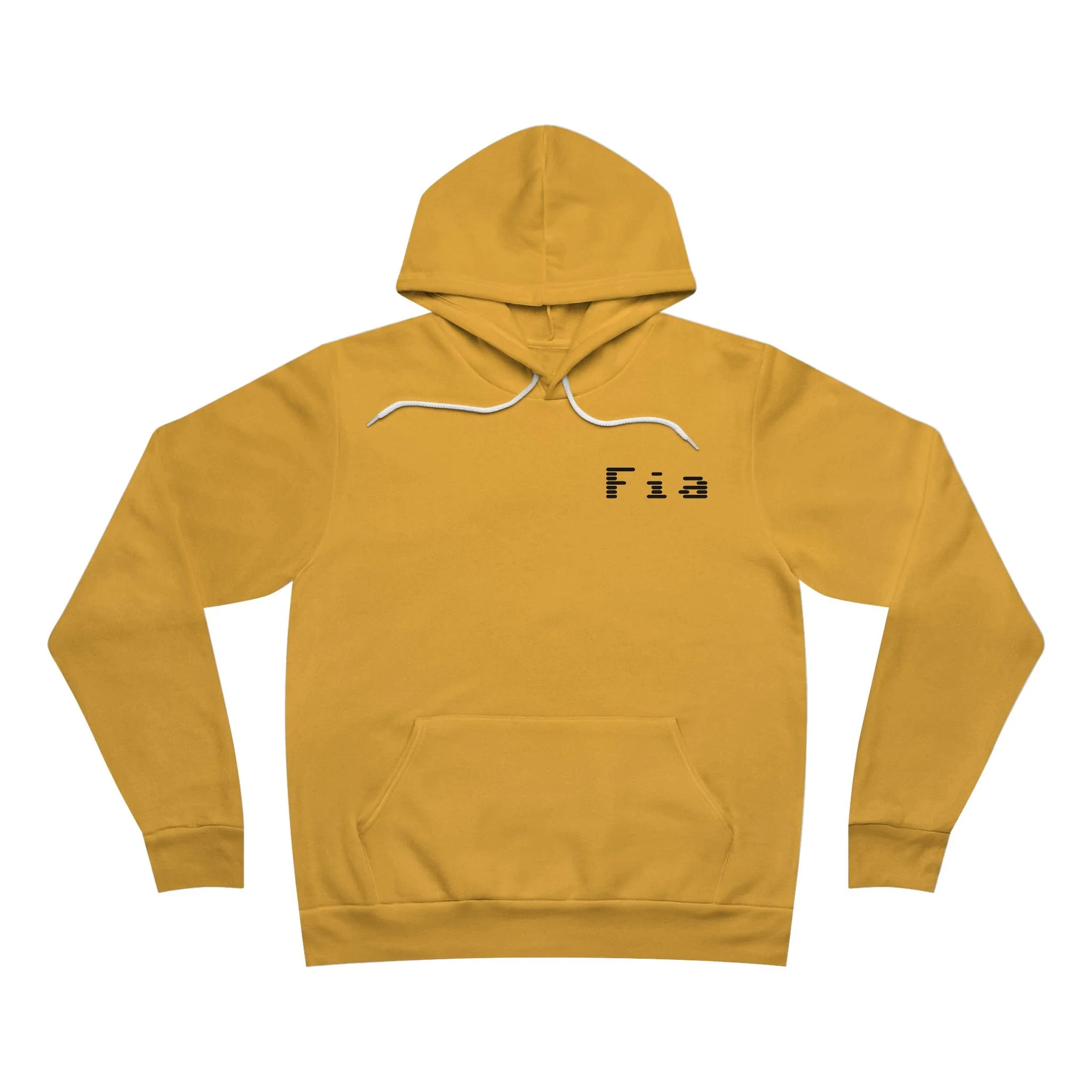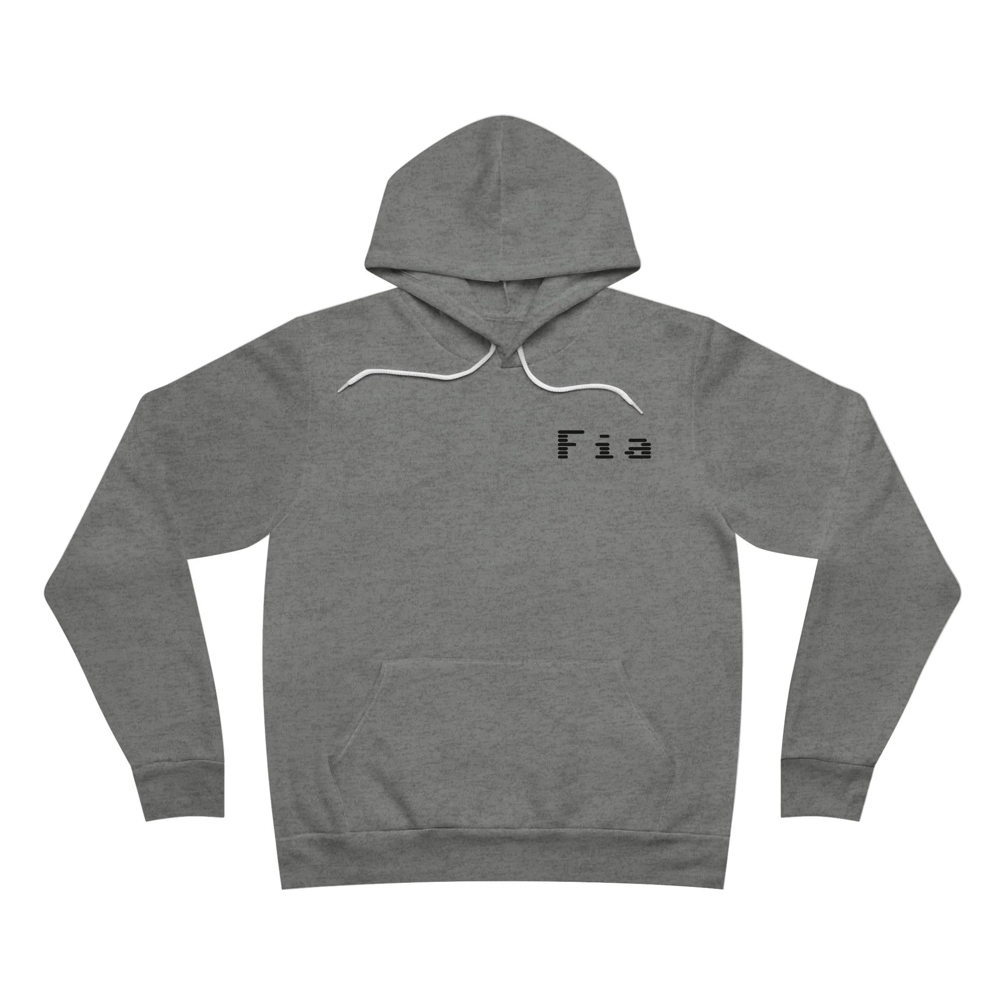 The unisex sponge fleece pullover hoodie is a blend of Airlume cotton and polyester. The percentages vary according to color. A pouch-style pocket spreads across the lower half of the garment’s front. The hood can be tightened with a white drawcord. Both cuffs and waistband have ribbing for extra grip.